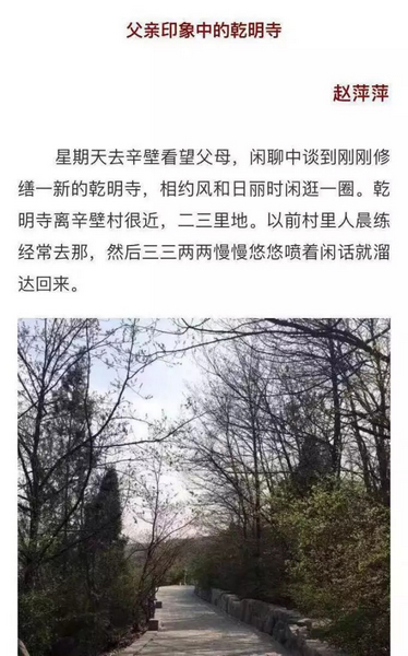 赵萍萍发布的文章《父亲印象中的乾明寺》