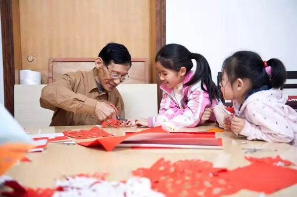 如今84岁的刘伟南依然坚持到学校开剪纸课